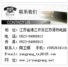 地 址:江蘇省靖江開發(fā)區(qū)蘇源熱電路 電 話:0523-84868913 傳 真:0523-84868913 E-mail:yangyang_twj@126.com